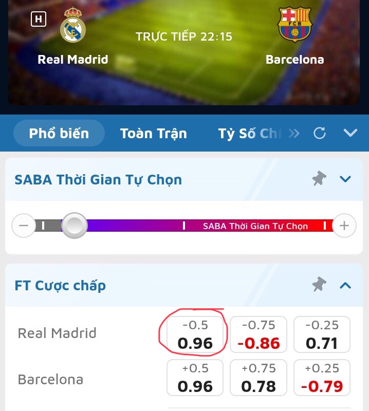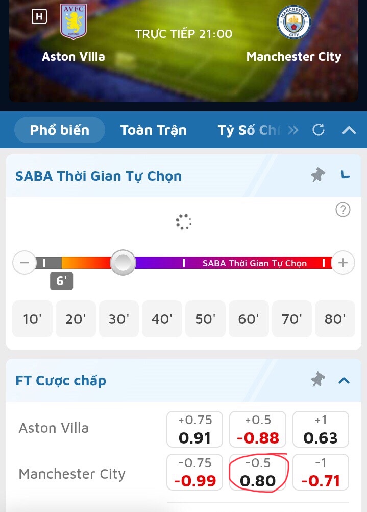 Over/Under Full Time hoặc Handicap Full Time